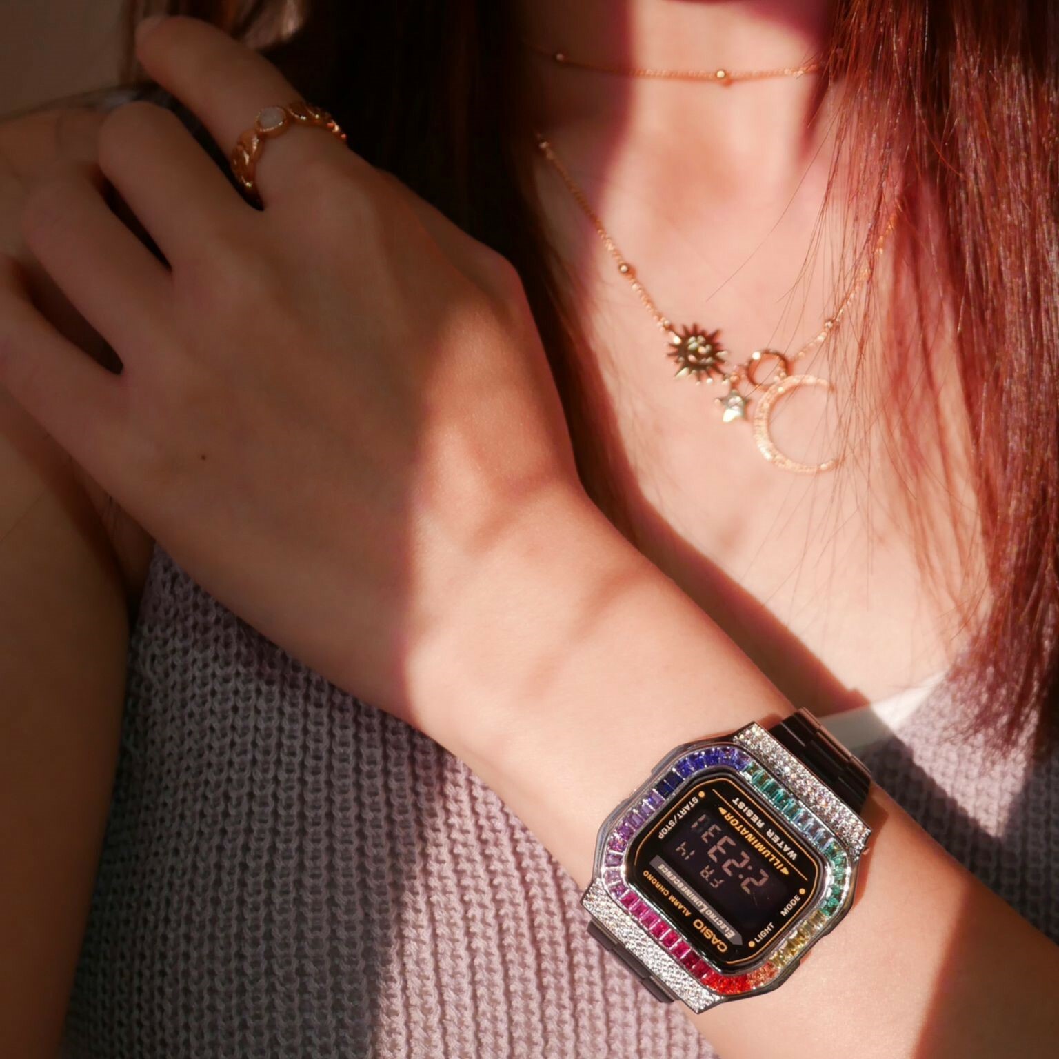 銀色 改裝手錶 A168WEGB-1B - 彩虹