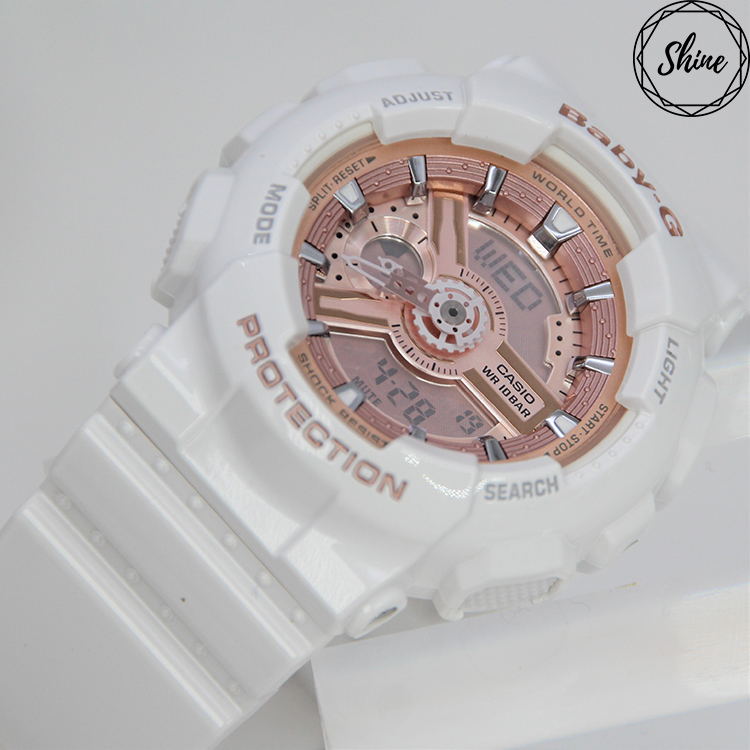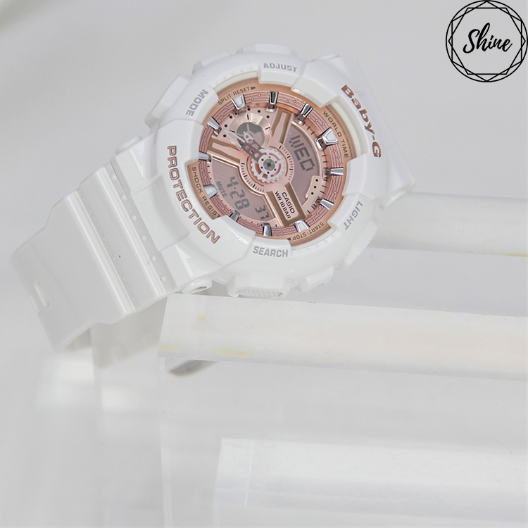 讓受歡迎的 G-SHOCK GA-110 系列搖身一變成為輕巧的 Baby-G 系列,帶來煥然一新的全新型號。全新型號有黑色、白色、半透明和銀色可供選擇。這些型號的錶面以多層次結構,金屬元素增添華麗感,令手錶成為引人注目的時尚配飾。打造出一系列適合女性手腕以及吸引眼球的手錶。