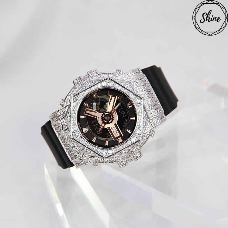• 銀色 玫瑰設計閃石殼