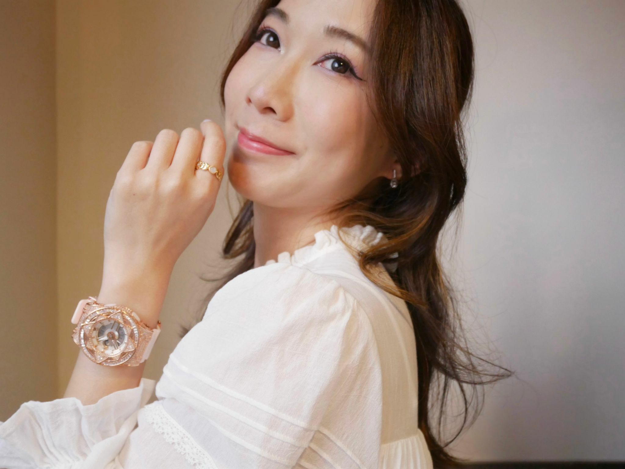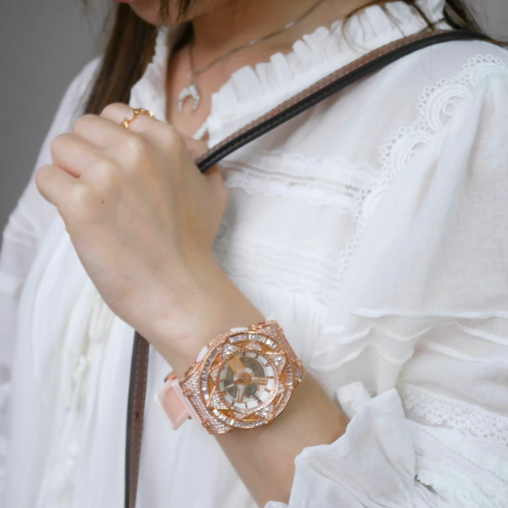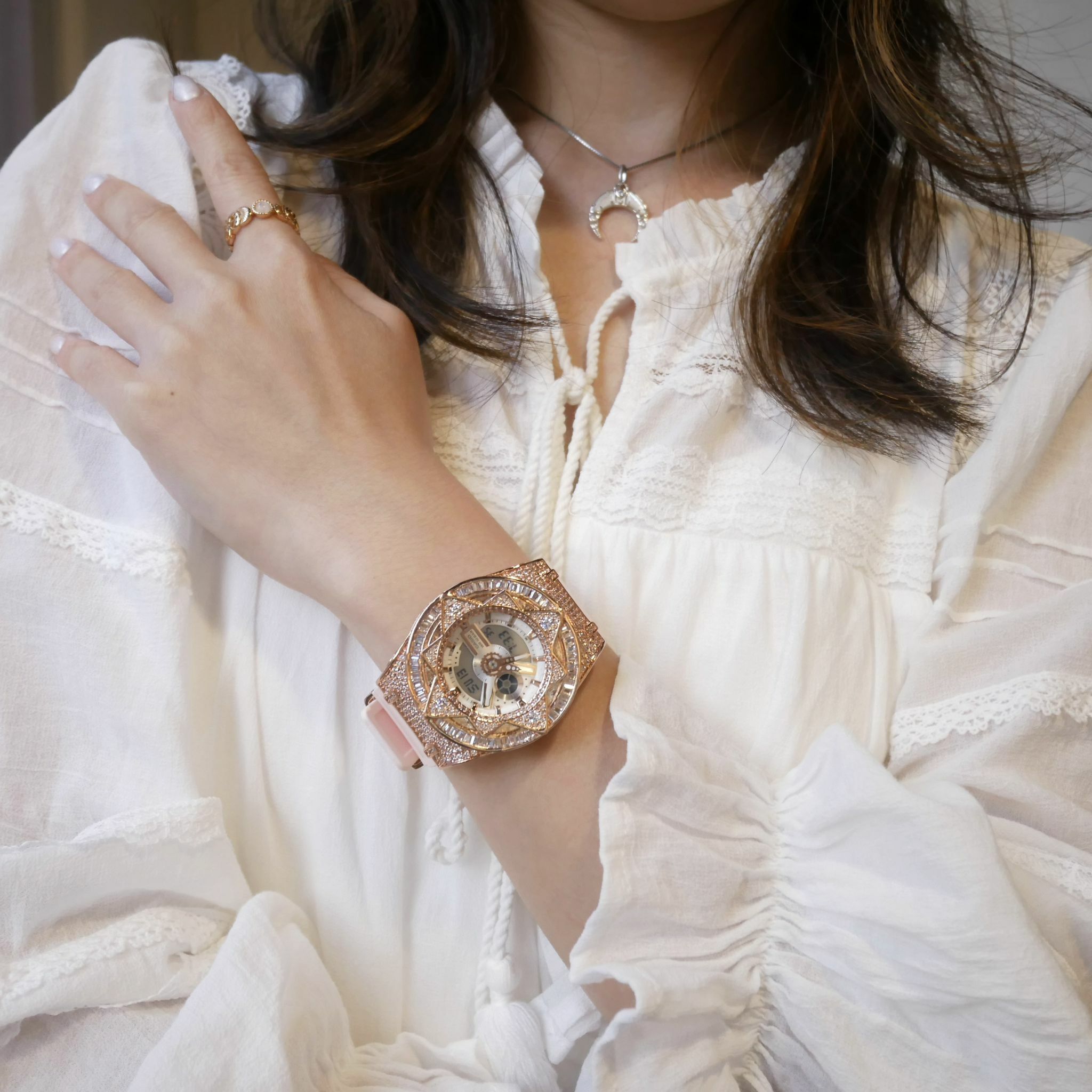 • 玫瑰金色 閃石錶扣