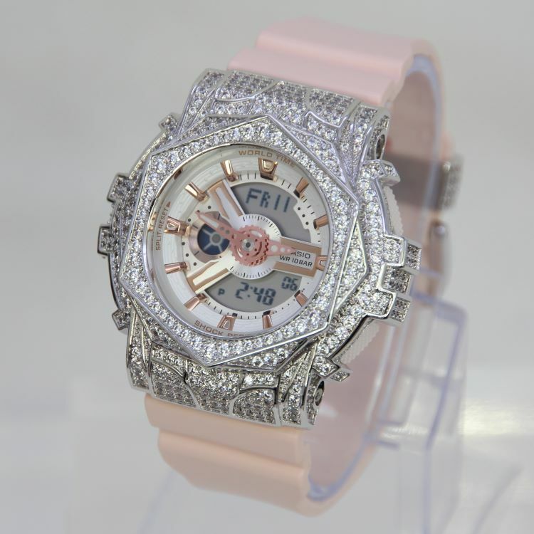 銀色 改裝手錶 BA-110RG-4A - 玫瑰