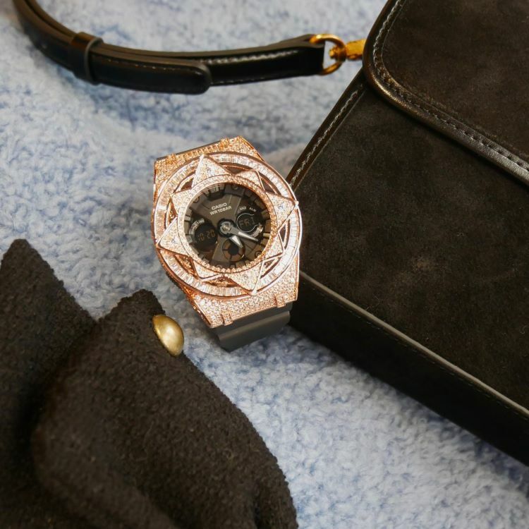 • 玫瑰金色 閃石錶扣