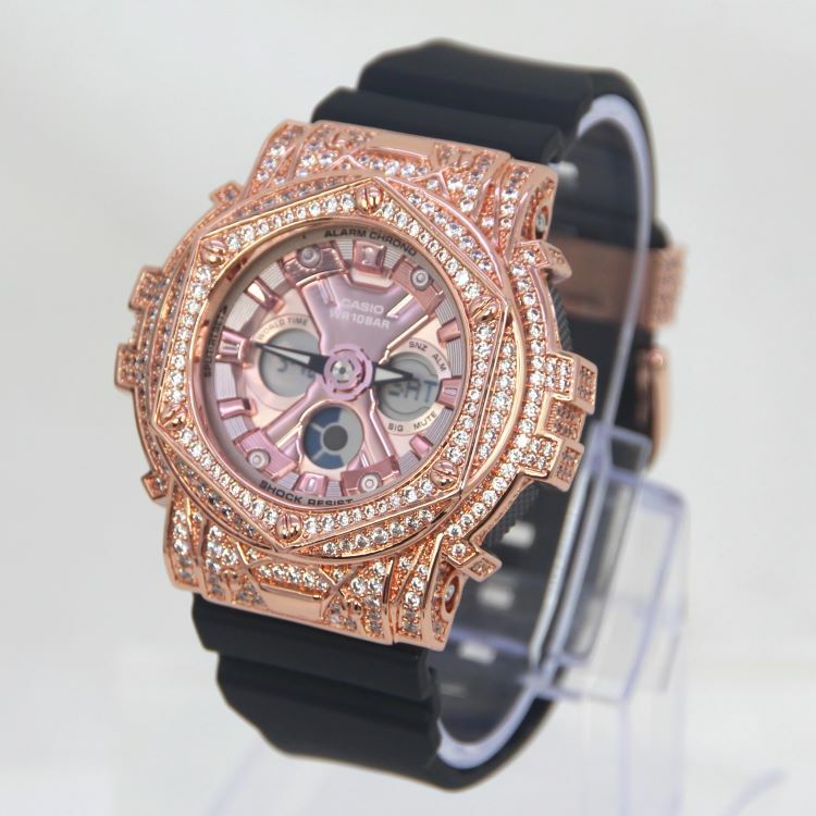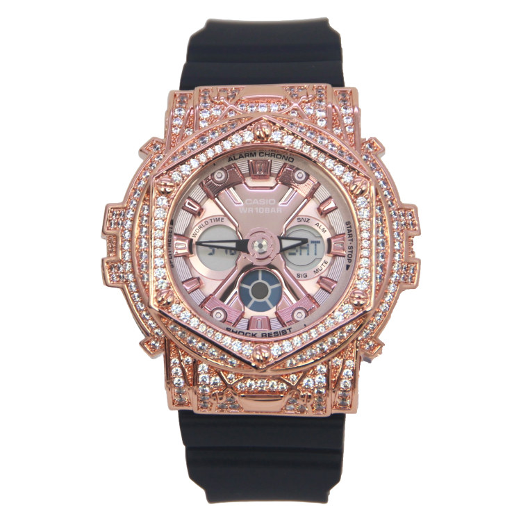 • 玫瑰金色 閃石錶扣