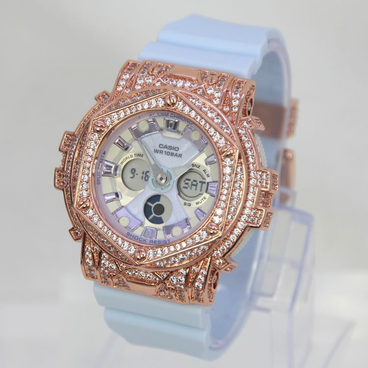 • 玫瑰金色 閃石錶扣