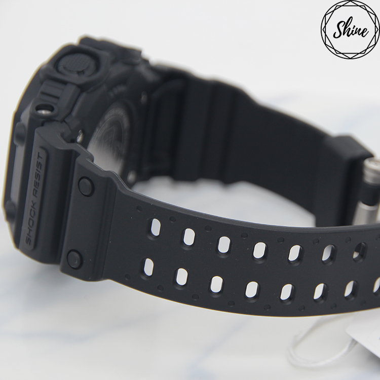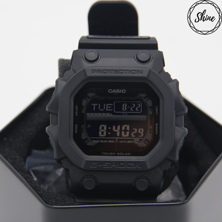 G-SHOCK 不斷為可靠耐用的時計定下新標準,推出特別採用基本的黑色G-SHOCK 設計,並掌握單色樹脂精髓的型號錶款。此型號根據GX-56 而設計,可承受來自任何方向的衝擊。簡單的啞色黑色加工,能更加突顯腕錶自身的特色,而錶扣則有黑色離子鍍加工。