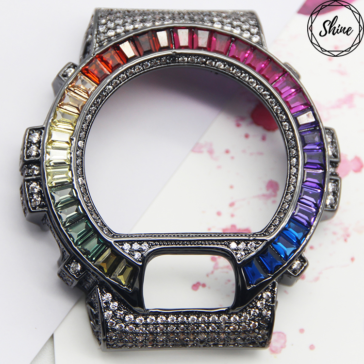 客製G-SHOCK 金X白閃石 DW-6900 金屬面板G鍵