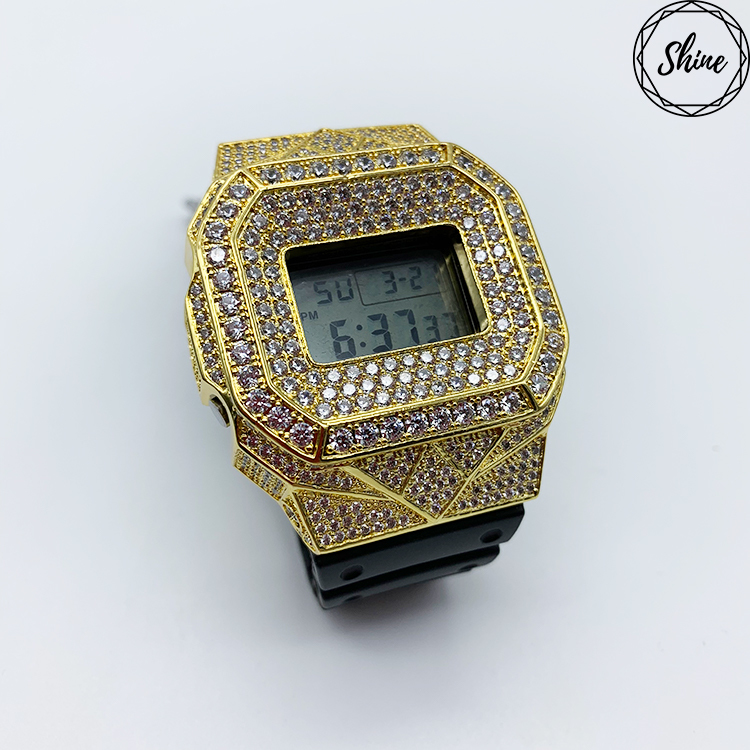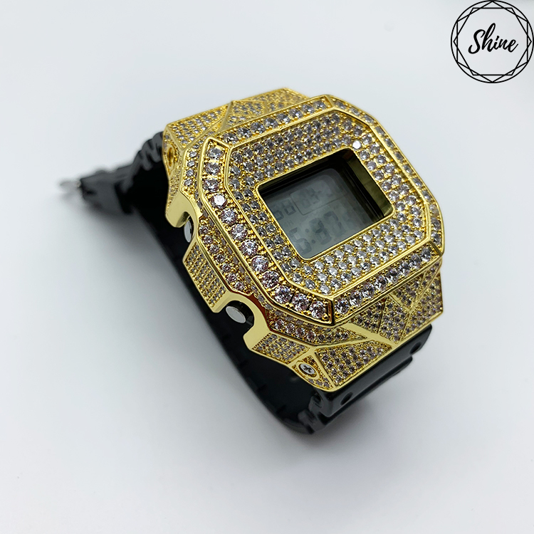 客製 DW-5600 方塊金X白閃石鑲石金屬錶殼