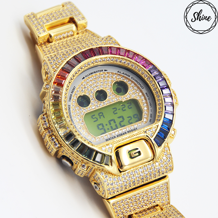 客製G-SHOCK 金X白閃石 DW-6900 金屬面板G鍵