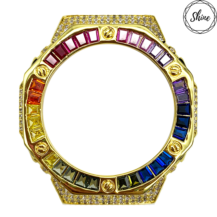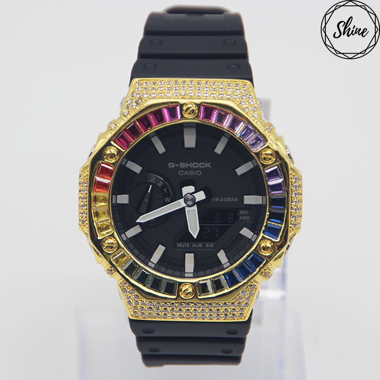 客製 GA-2100 金X白石彩虹閃石金屬錶殼