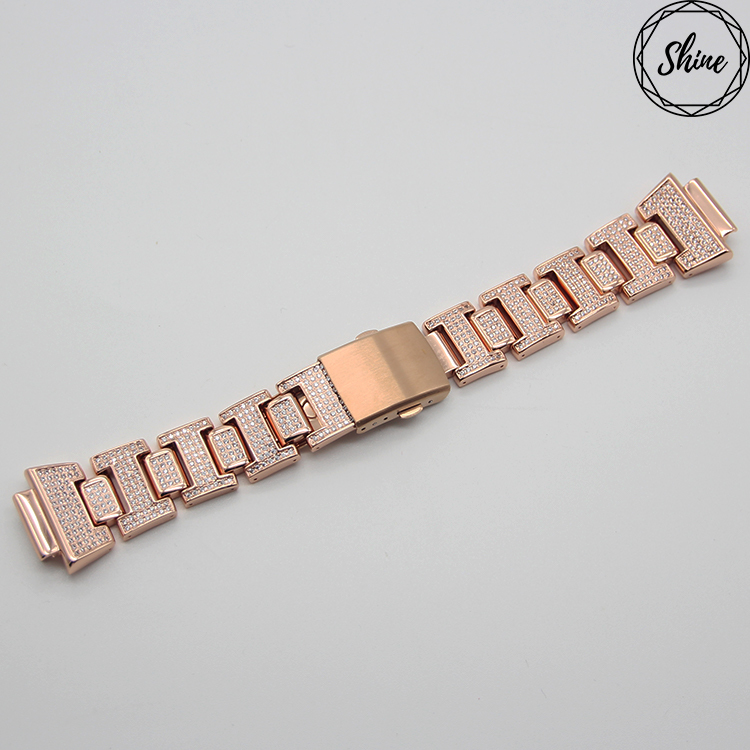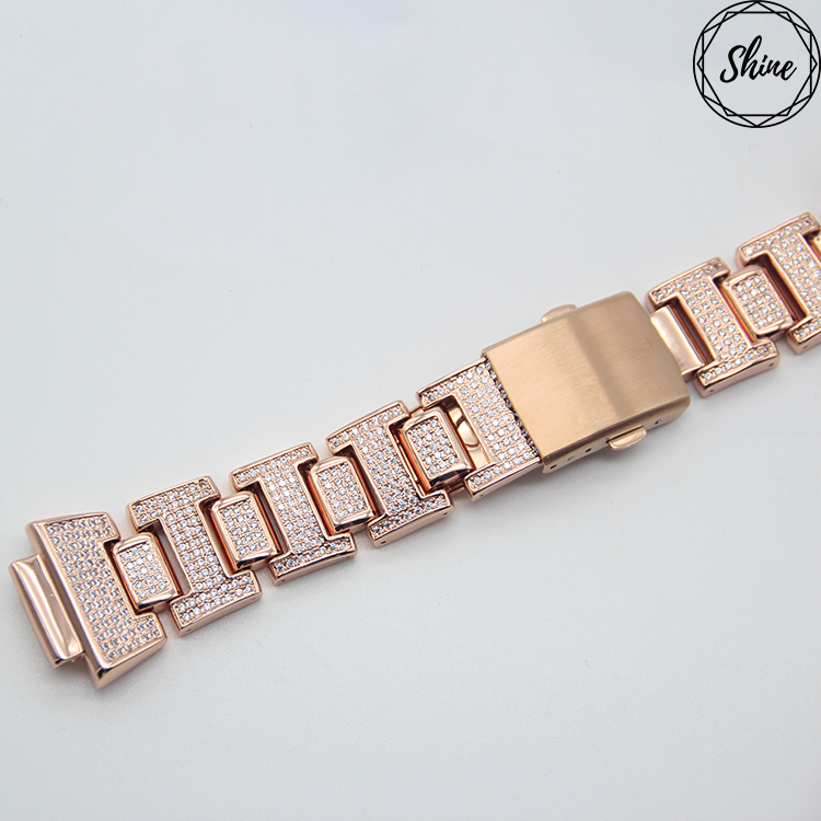客製 GA-110 / DW-5600 / DW-6900 方塊玫瑰金X白閃石金屬錶帶