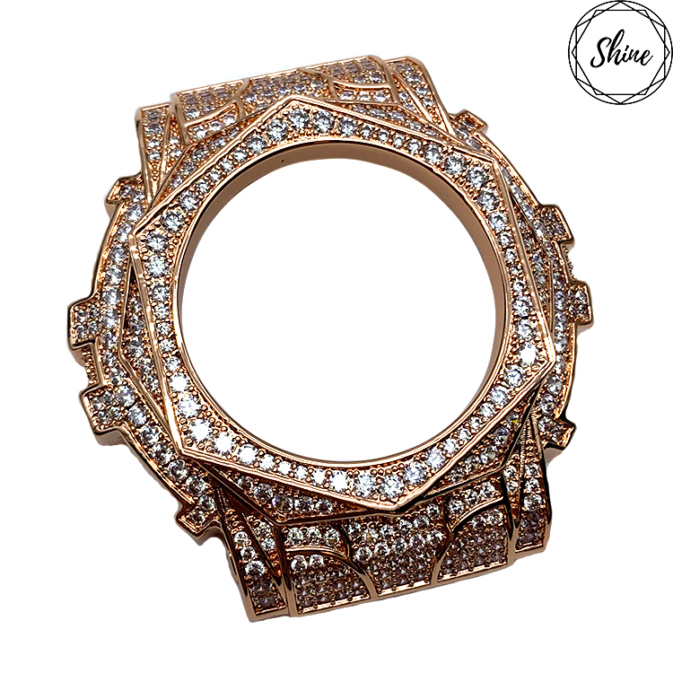 客製G-SHOCK GA-110 / DW-5600 / DW-6900 方塊玫瑰金X白閃石金屬錶帶