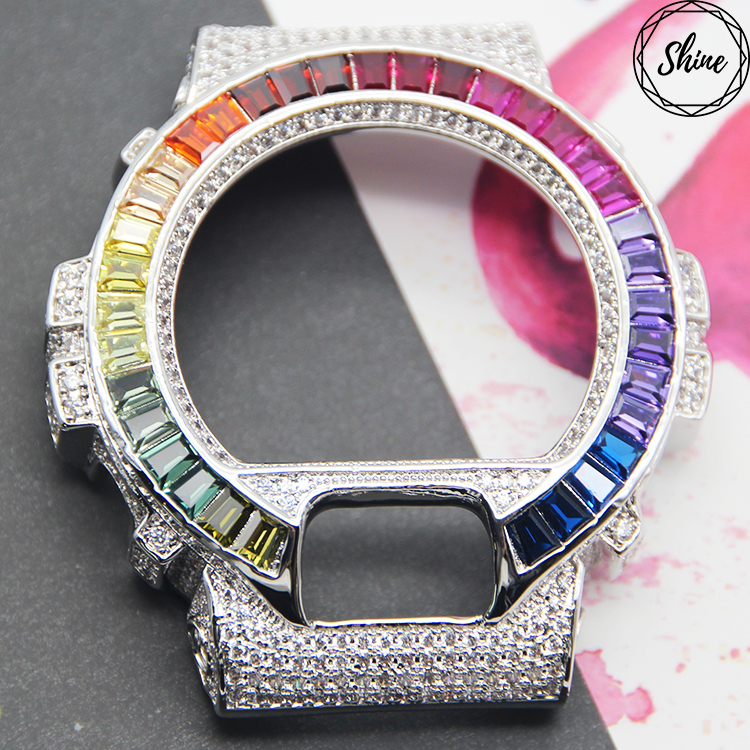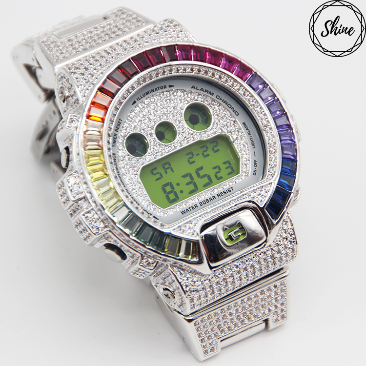 分享到 客製G-SHOCK 銀X白閃石 DW-6900 金屬面板G鍵