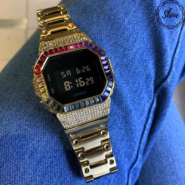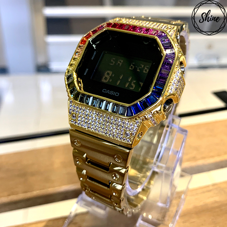 金色 改裝手錶 DW-5600BB-1 (不鏽鋼錶帶) - 彩虹