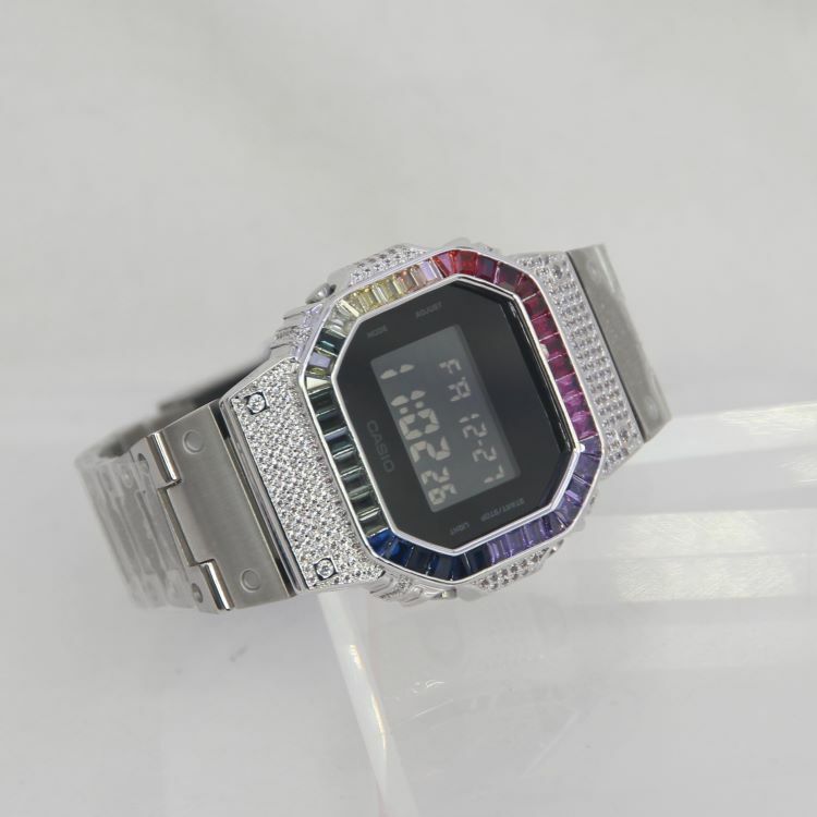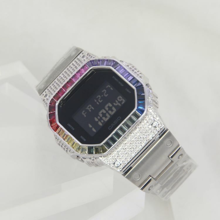 銀色 改裝手錶 DW-5600BB-1 (不鏽鋼錶帶) - 彩虹