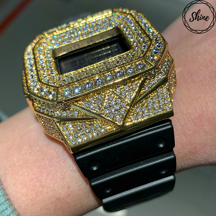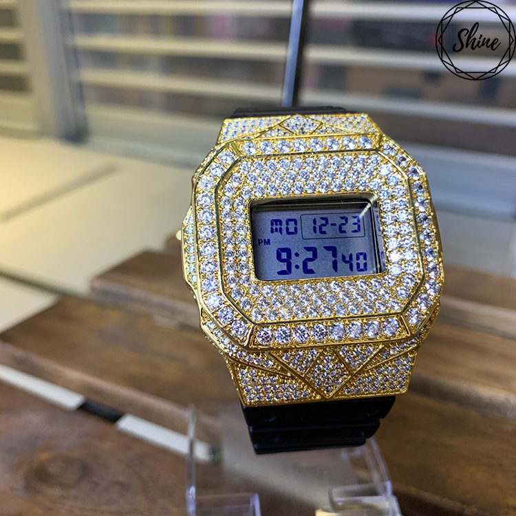 客製 DW-5600E-1 金色方塊鑲石金屬錶殼全套