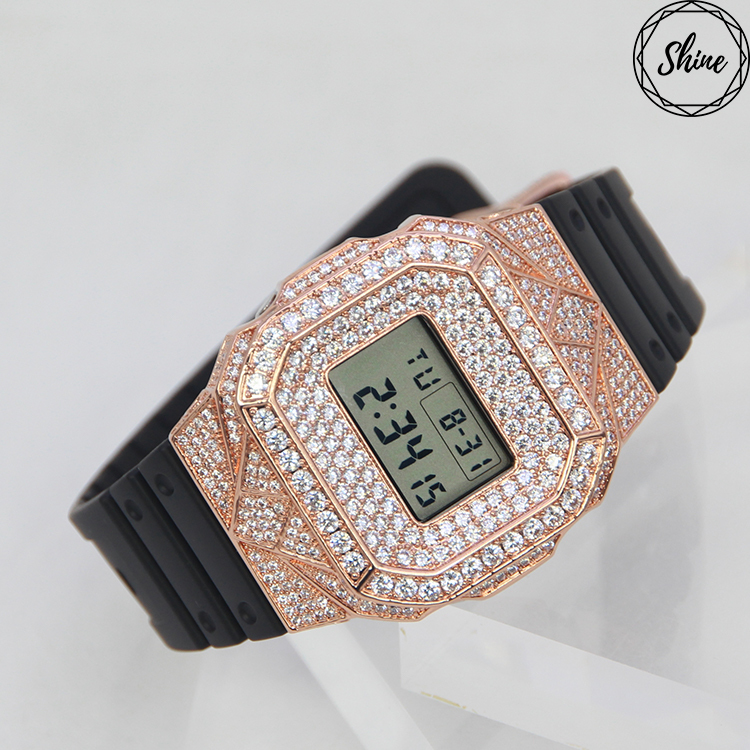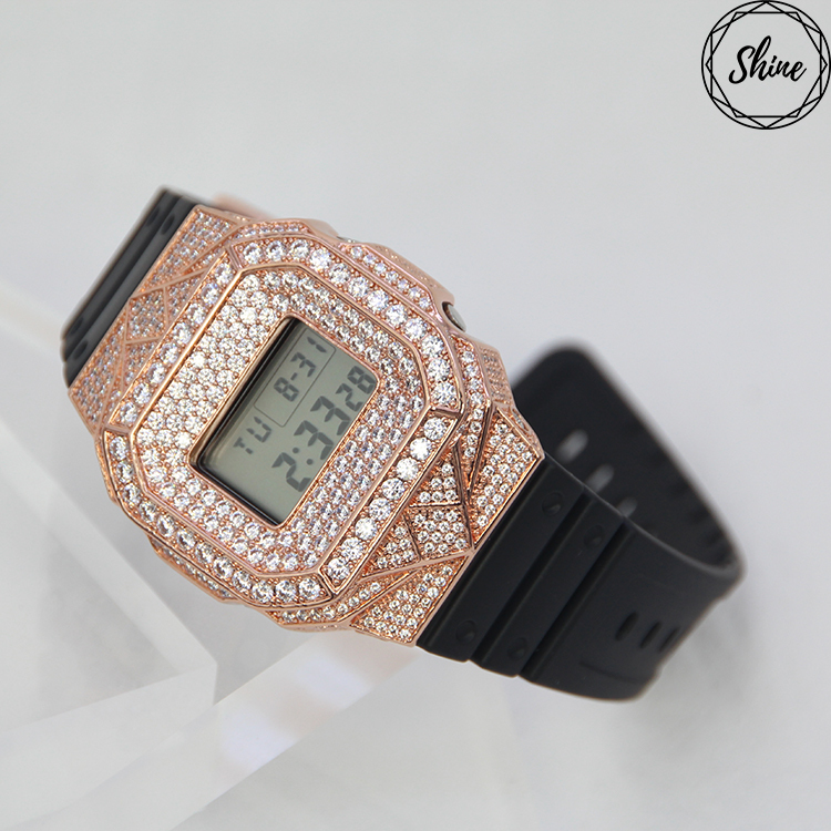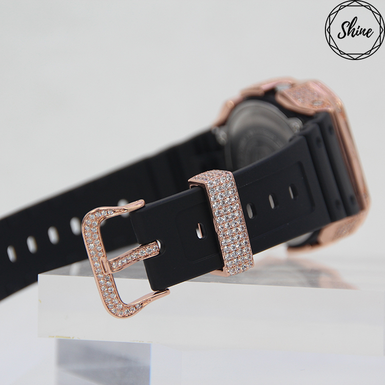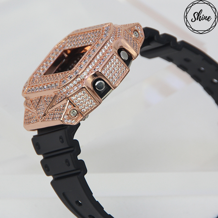 客製 DW-5600E-1 玫瑰金色方塊鑲石金屬錶殼全套