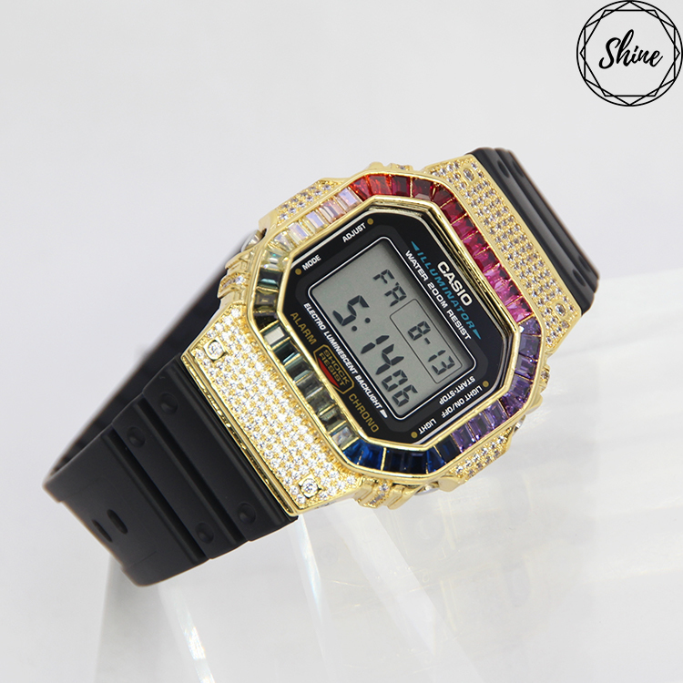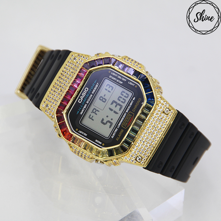 金色 改裝手錶 DW-5600E-1 - 彩虹