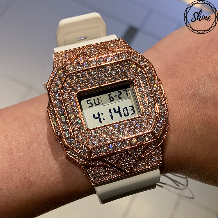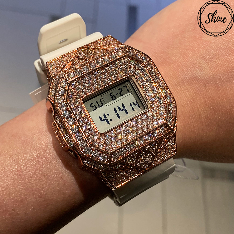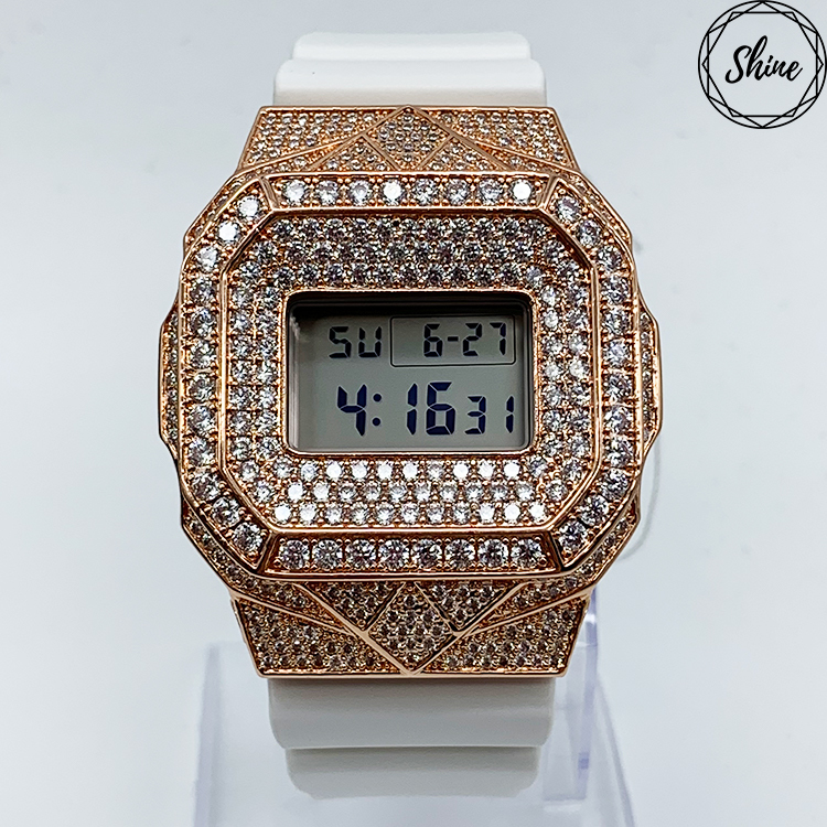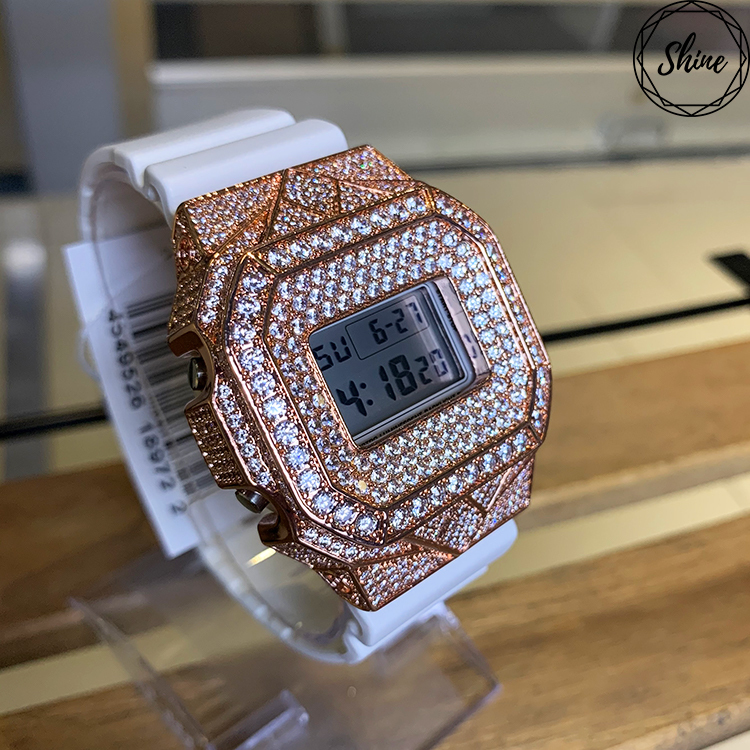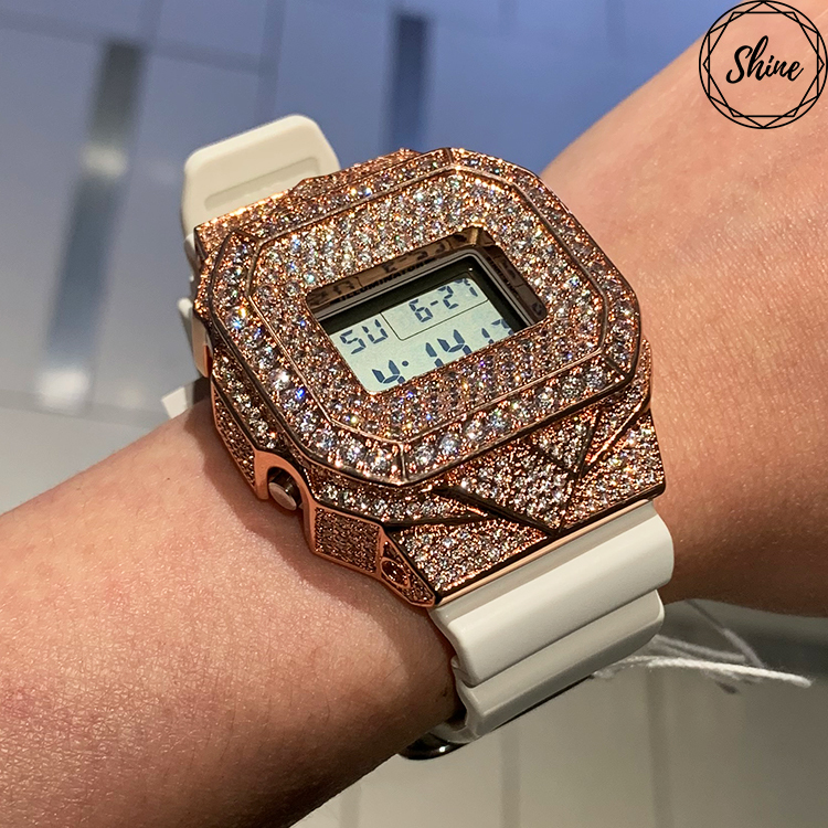 客製 DW-5600MW-7 玫瑰金色方塊鑲石金屬錶殼全套