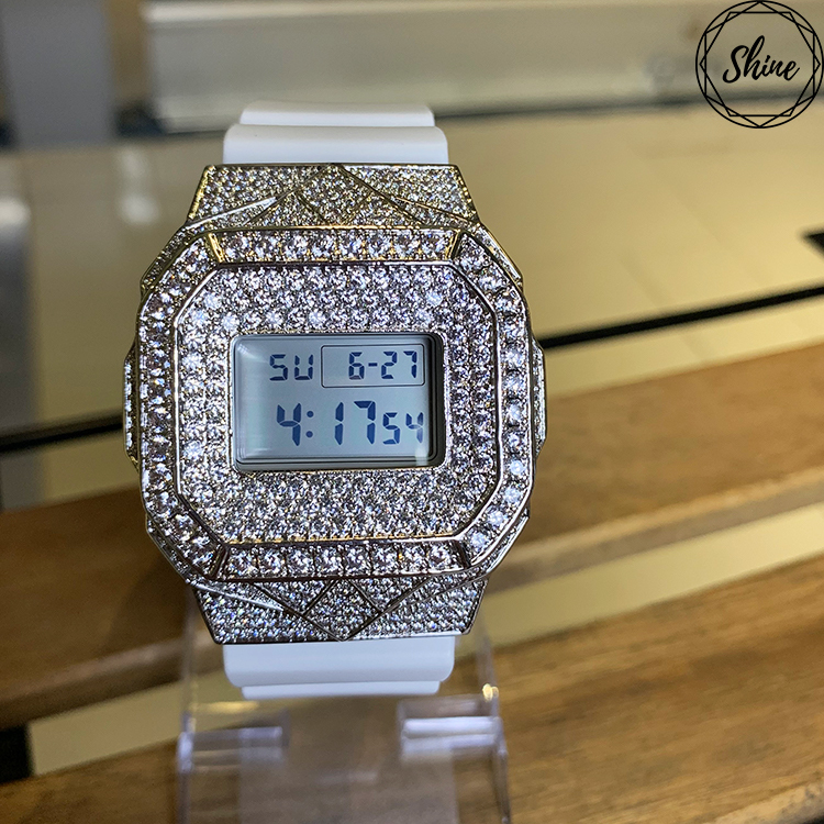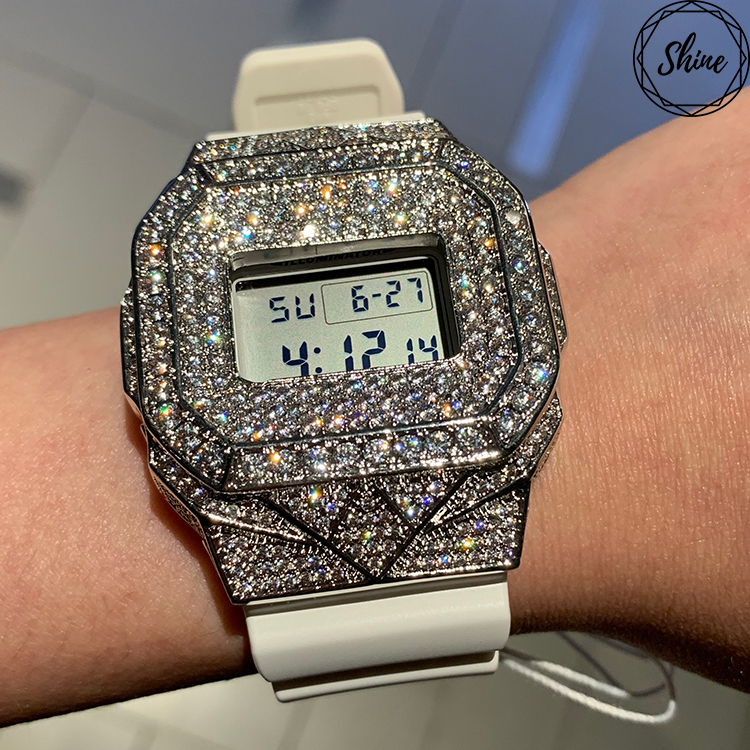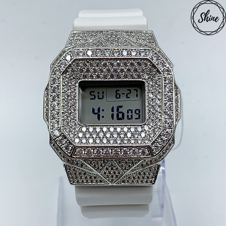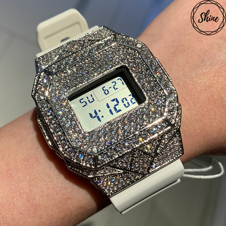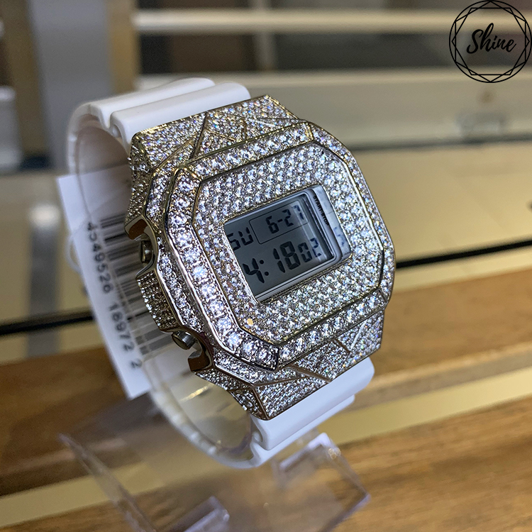 客製 DW-5600MW-7 銀色方塊鑲石金屬錶殼全套