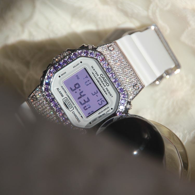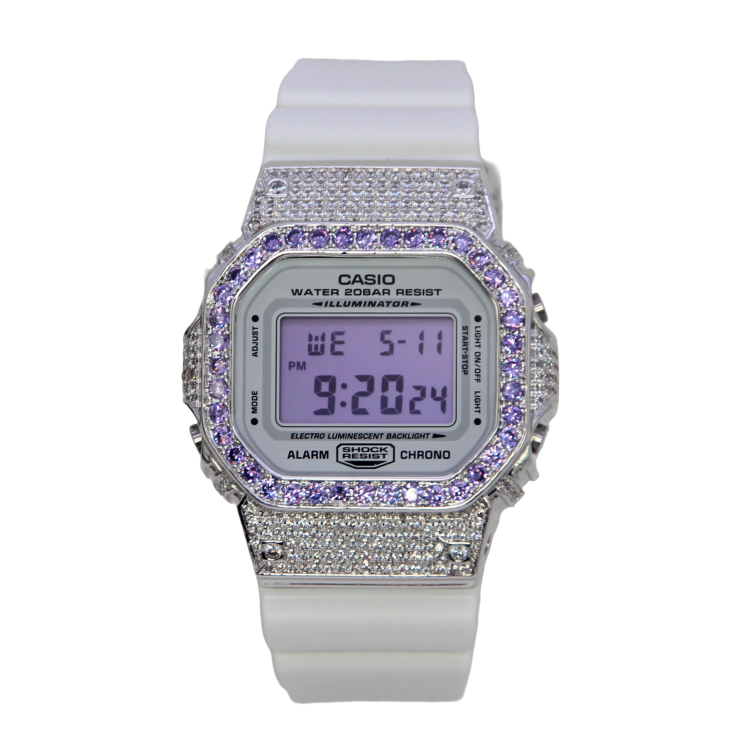銀色 改裝手錶 DW-5600MW-7 (紫屏) - 經典紫圈