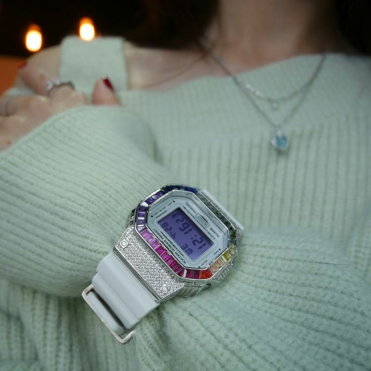 銀色 改裝手錶 DW-5600MW-7A - 彩虹