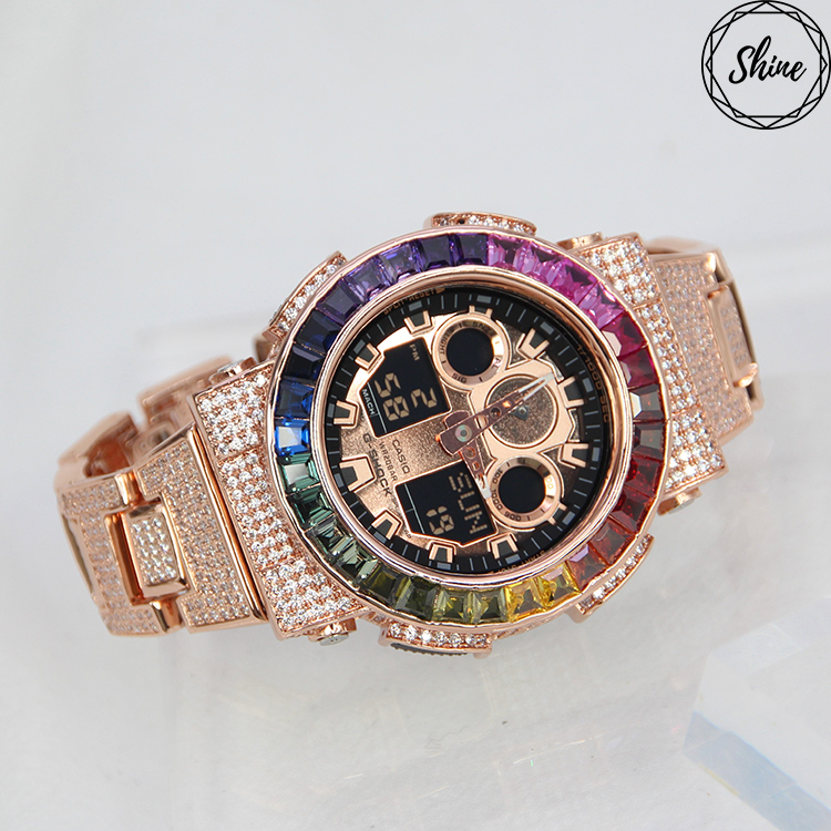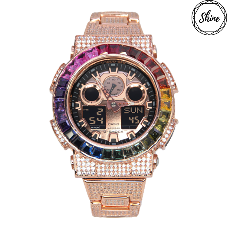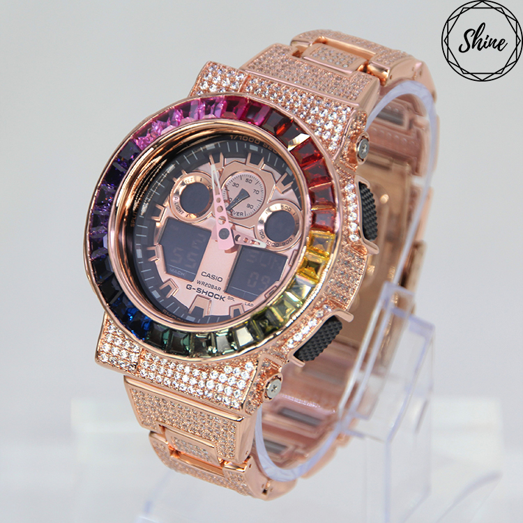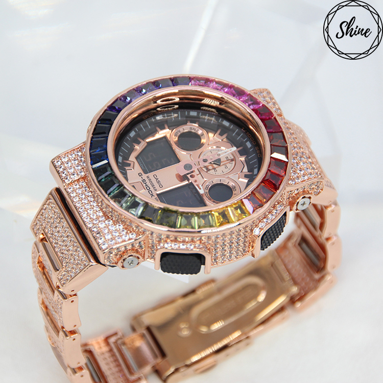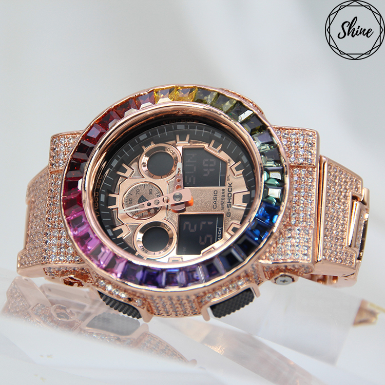 玫瑰金色 改裝手錶 GA-100MMC-1A (閃石錶帶) - 彩虹