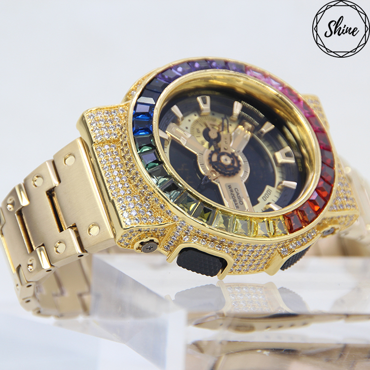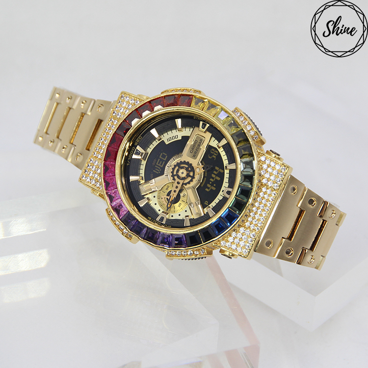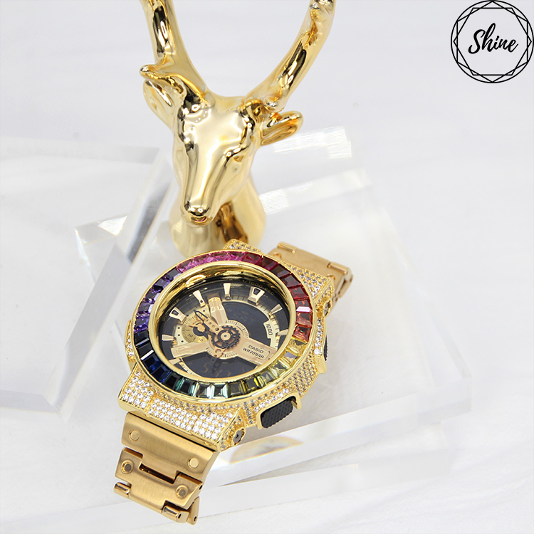 金色 改裝手錶 GA-110GB-1A (不鏽鋼錶帶) - 彩虹