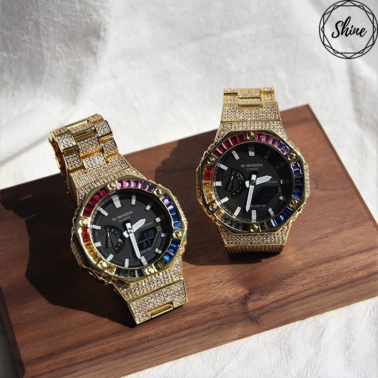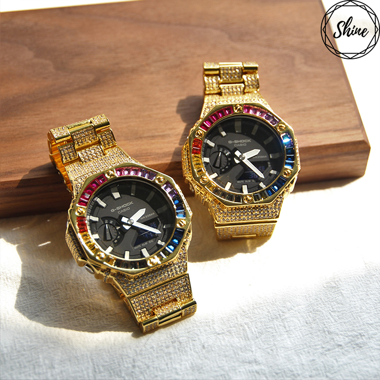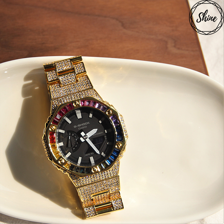 金色 改裝手錶 GA-2100-1A (閃石錶帶) - 彩虹