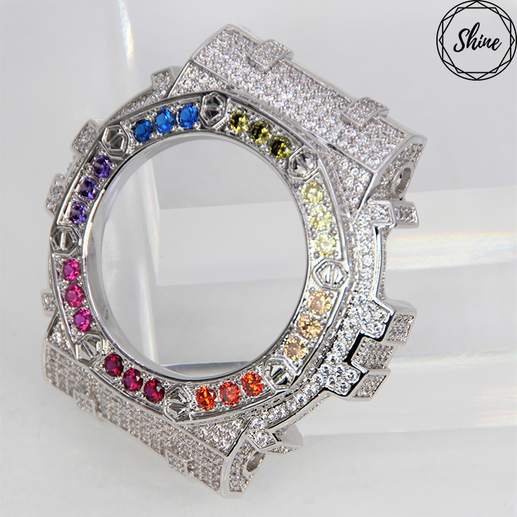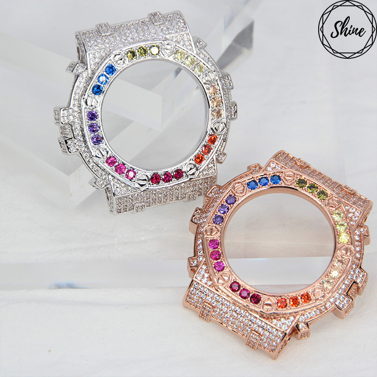 GMA 八角彩虹雙圈系列 銀色X白石 金屬錶殼