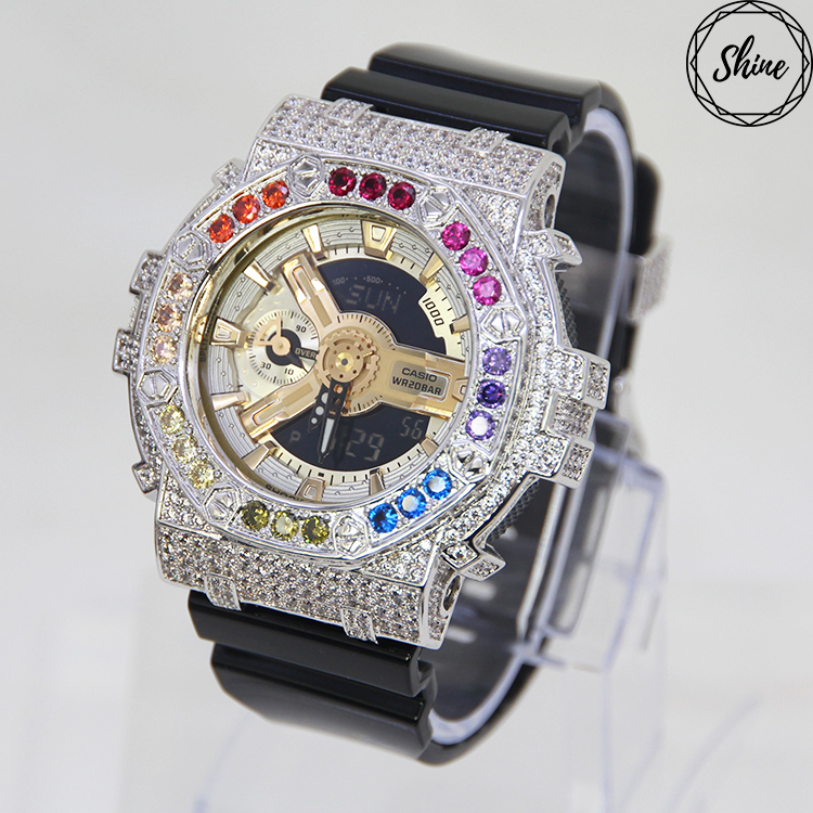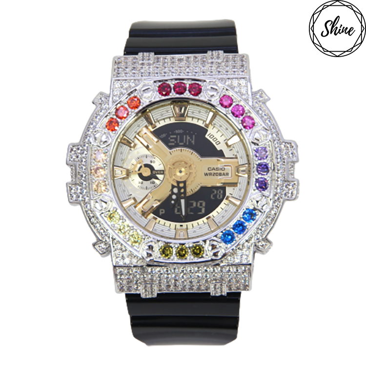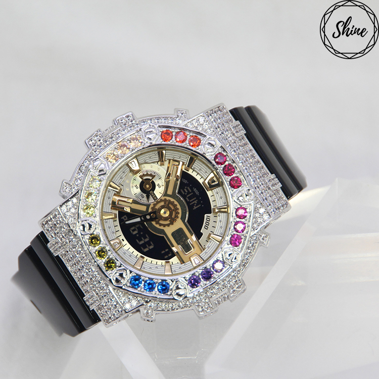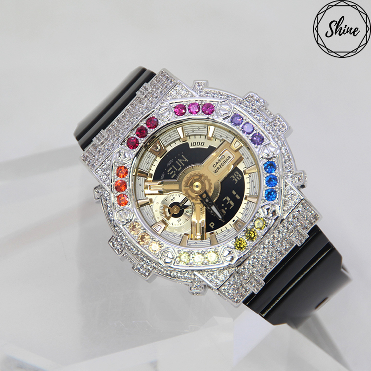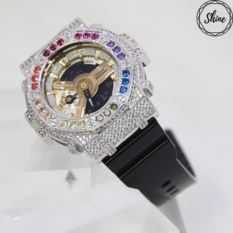 銀色 Mini-G 改裝手錶 GMA-S110GB-1A - 彩虹八角雙圈