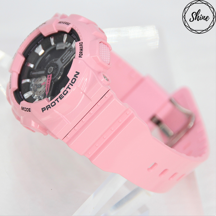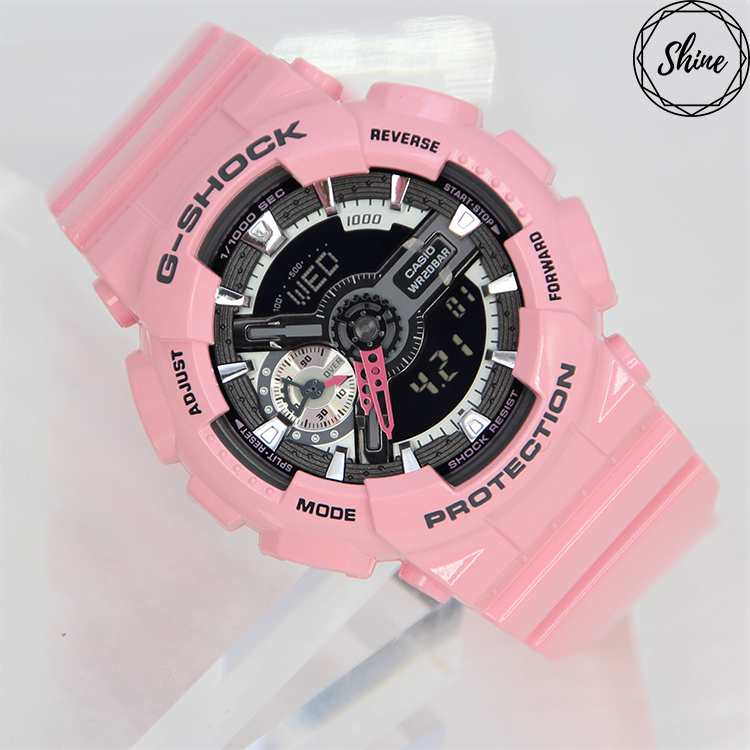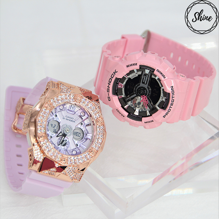 將G-SHOCK錶徑縮小至適合女性手腕配戴尺寸的S series,採用以G-SHOCK超人氣錶款110為基礎錶款,GMA-S110MP則以深淺粉紅色調為設計發想,46mm的錶徑大小更貼合手腕曲線,僅於CASIO概念店與流行友好通路販售。採用女孩最愛的粉紅系色調,從深到淺分別為桃紅、粉紅、蜜桃粉與雪白,再搭配上黑或白的液晶顯示,除了展現出可愛俏皮感之外,卻又不失個性,GMA-S110系列維持G-SHOCK的耐衝擊構造、防水200米、碼錶、倒數計時、鬧鈴…等多樣化機能。