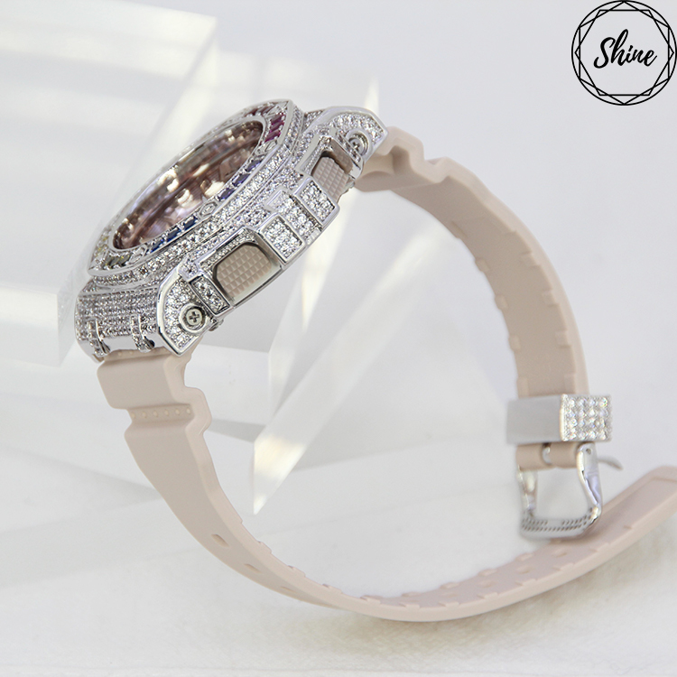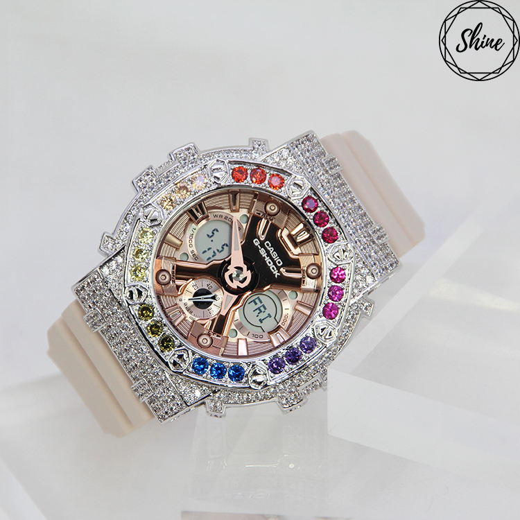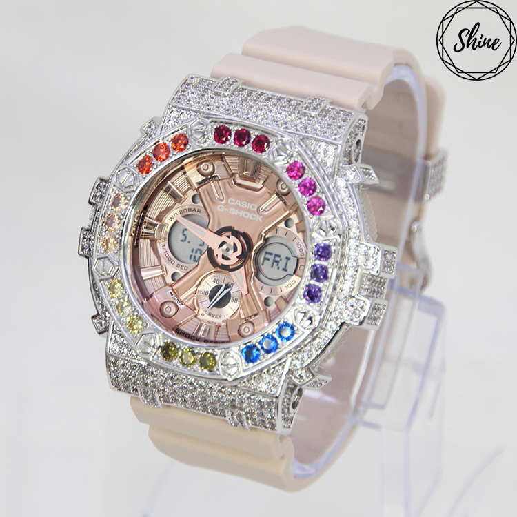 銀色 Mini-G 改裝手錶 GMA-S120MF-4A - 彩虹八角雙圈
