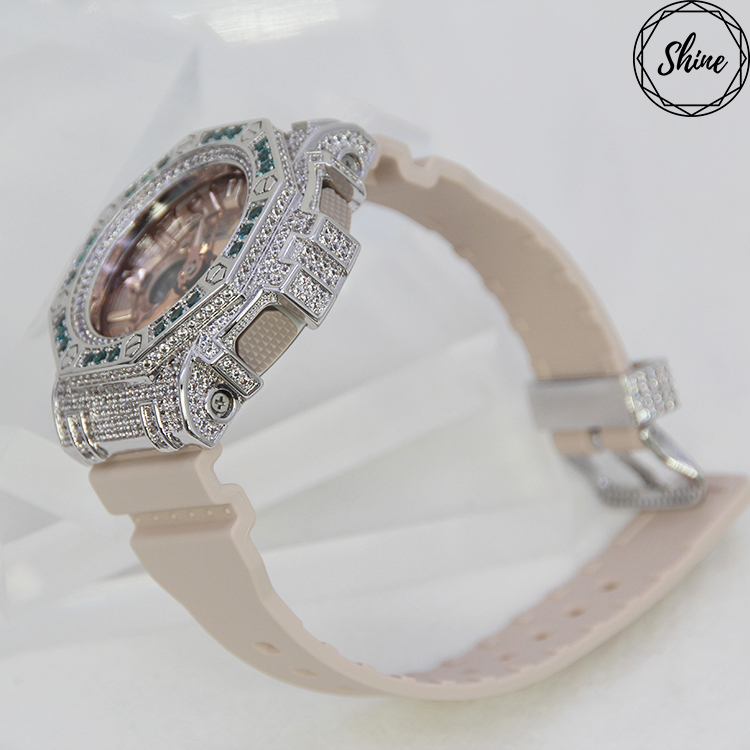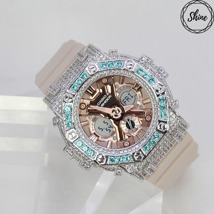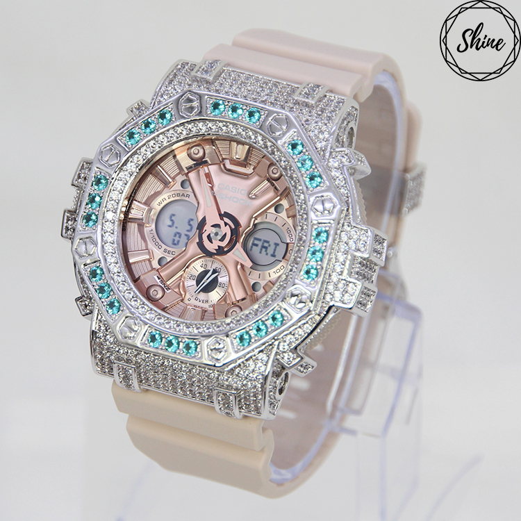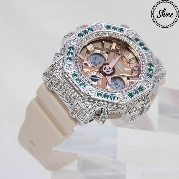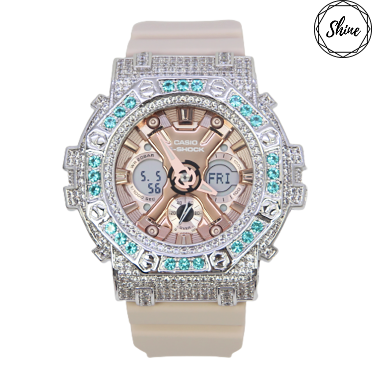 銀色 Mini-G 改裝手錶 GMA-S120MF-4A - 碧藍八角雙圈