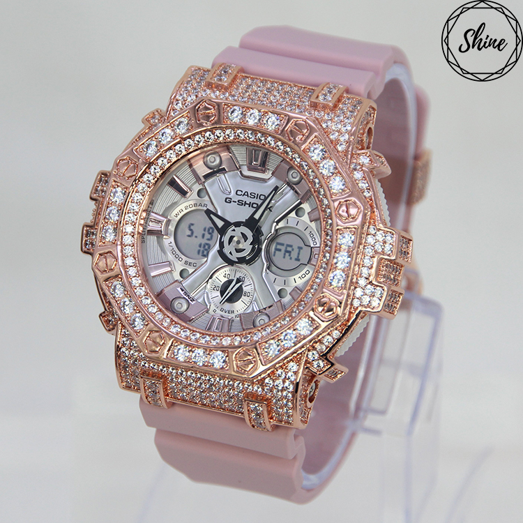 玫瑰金 Mini-G 改裝手錶 GMA-S120NP-4A - 八角雙圈