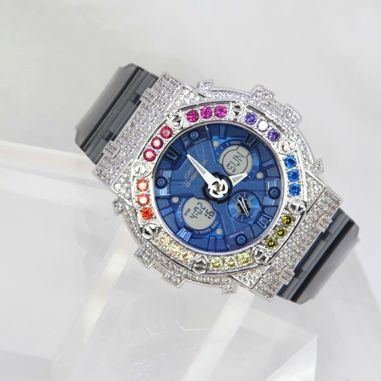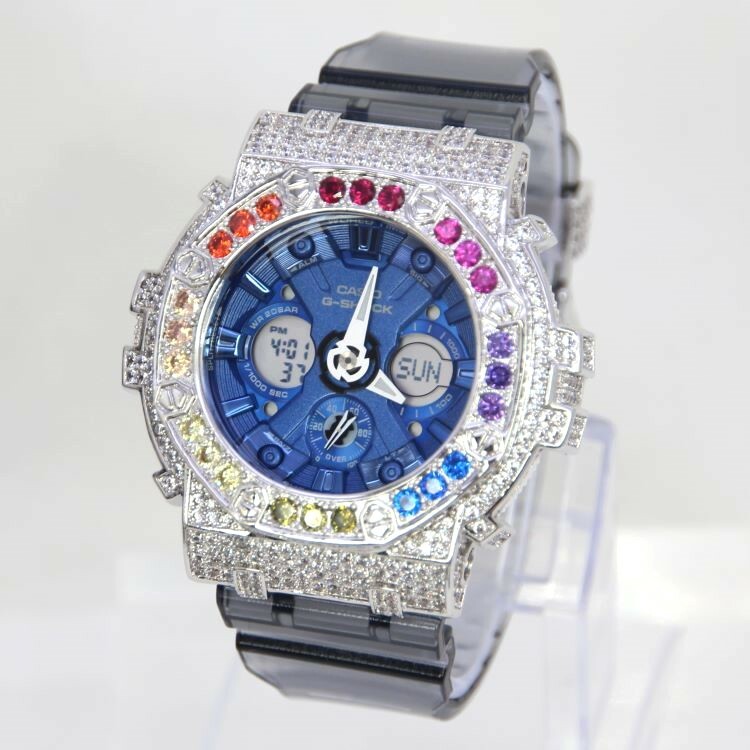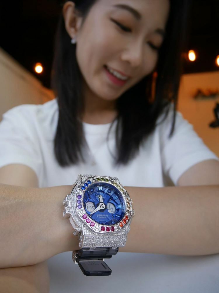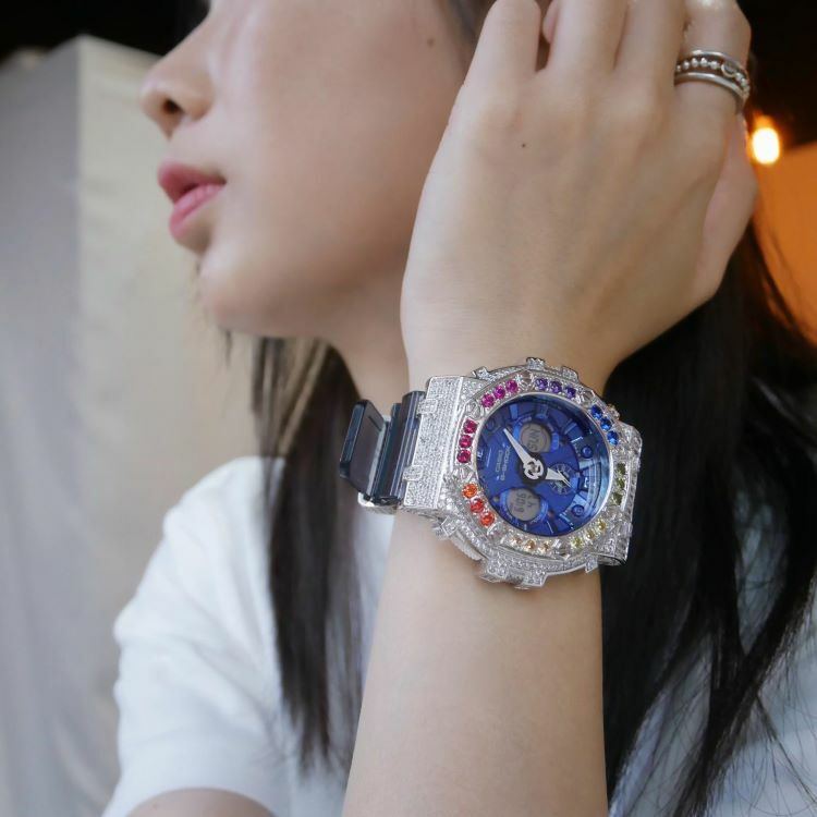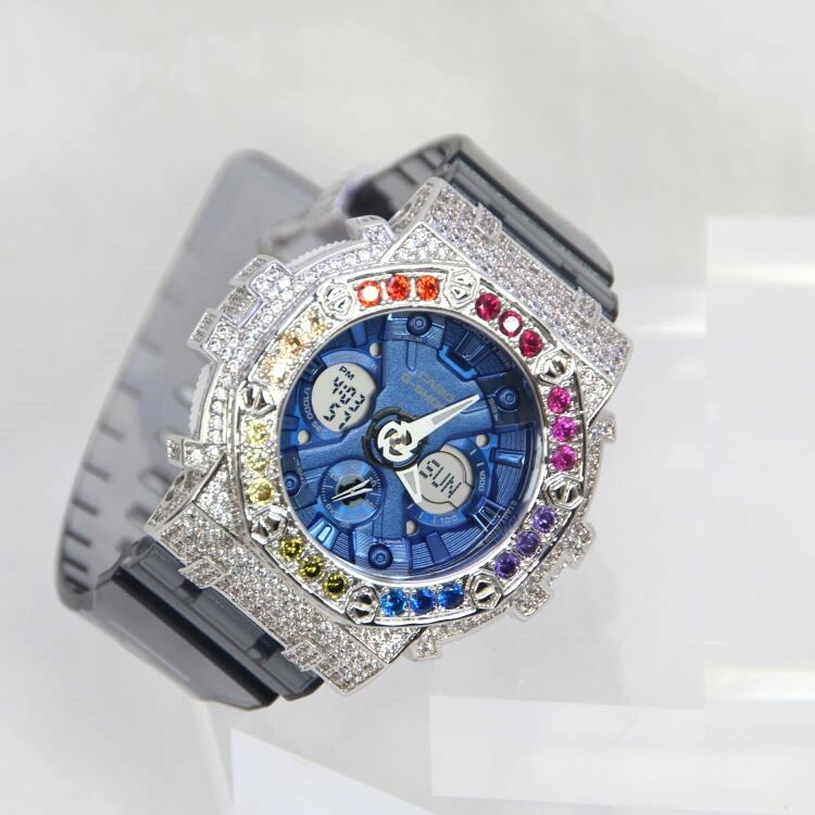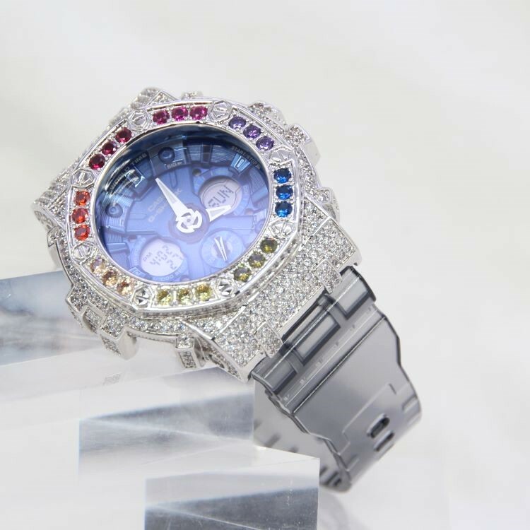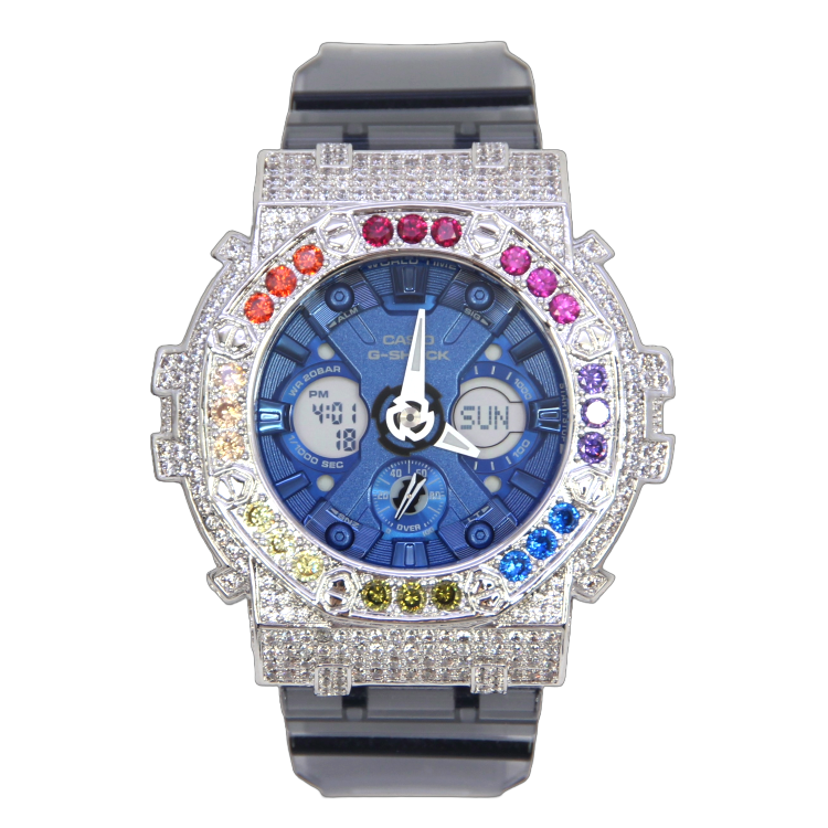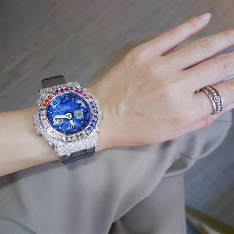 銀色 Mini-G 改裝手錶 GMA-S120TB-8A - 彩虹八角雙圈