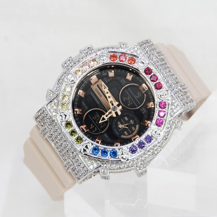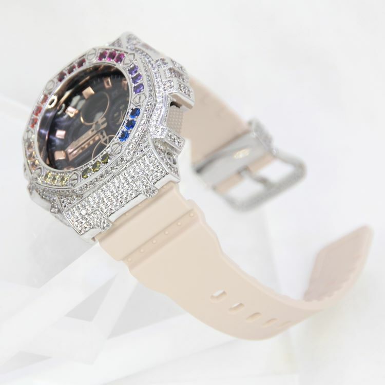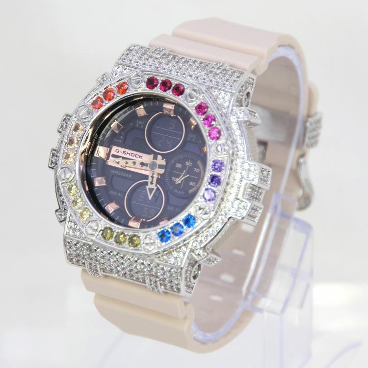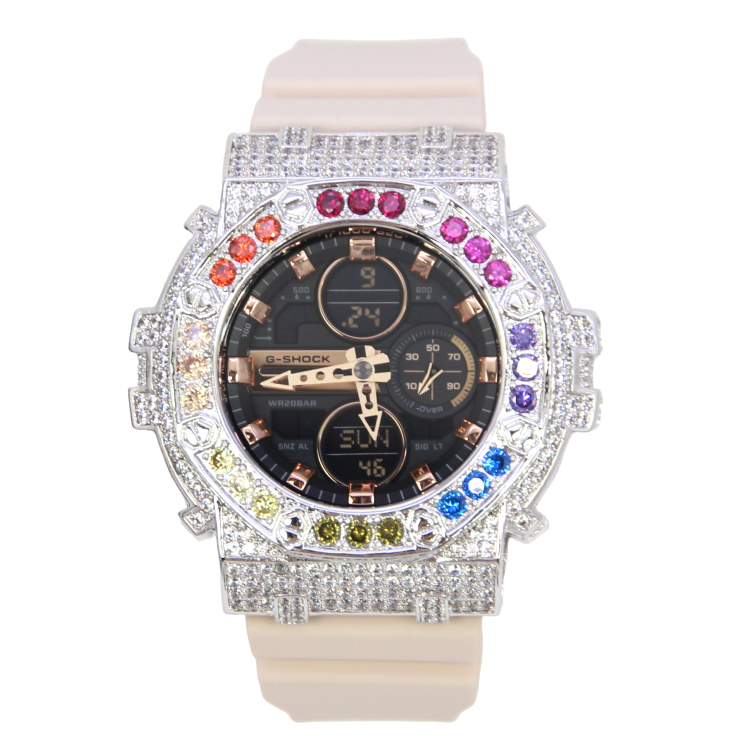 銀色 Mini-G 改裝手錶 GMA-S140M-4A - 彩虹八角雙圈