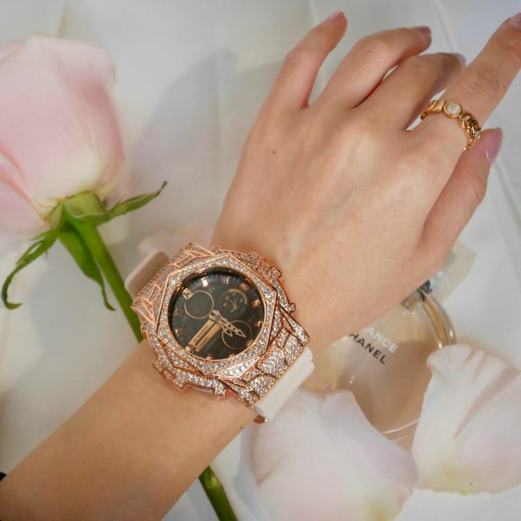 • 玫瑰金色 閃石錶扣