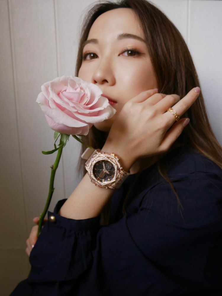 • 玫瑰金色 玫瑰設計閃石殼