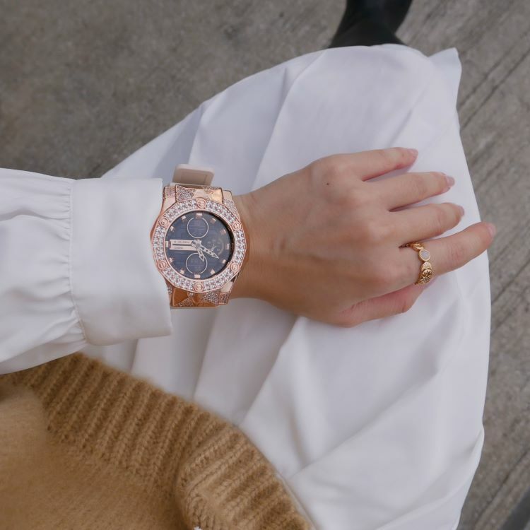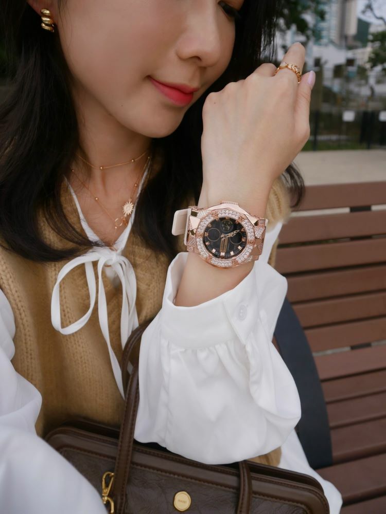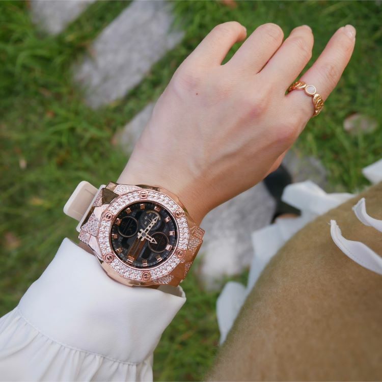 • 玫瑰金色 閃石錶扣