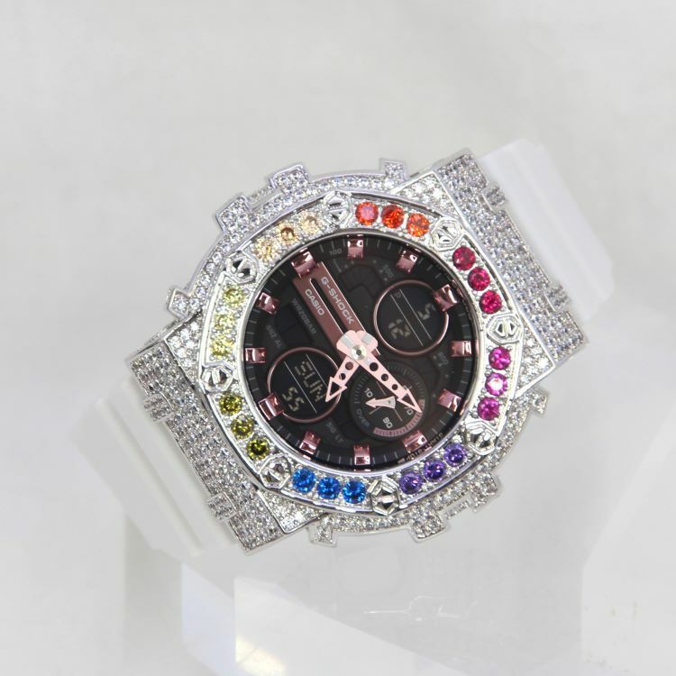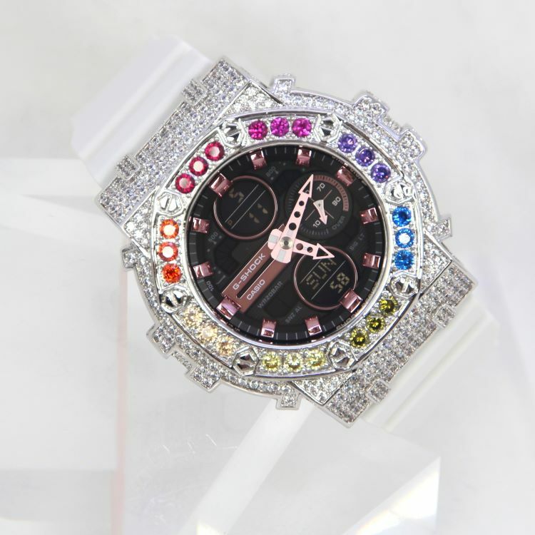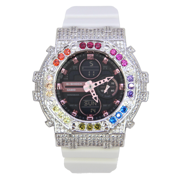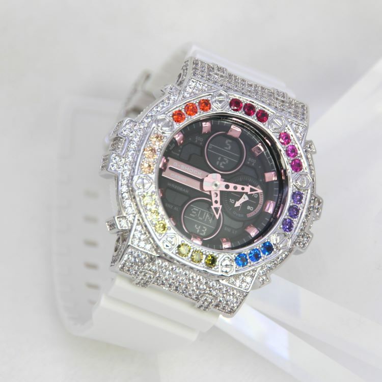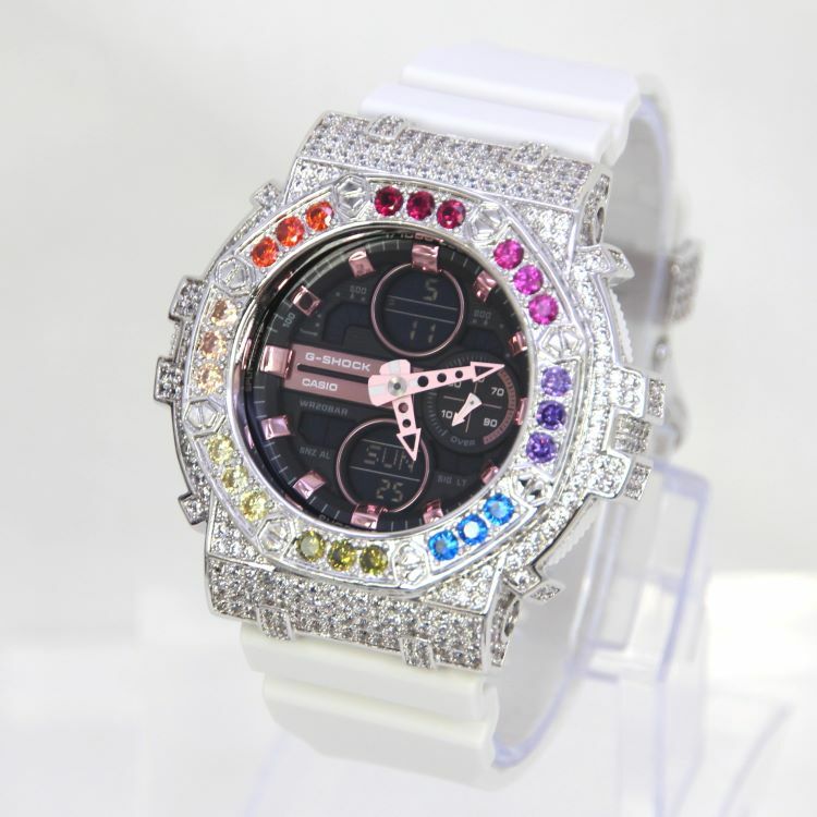 銀色 Mini-G 改裝手錶 GMA-S140M-7A - 彩虹八角雙圈