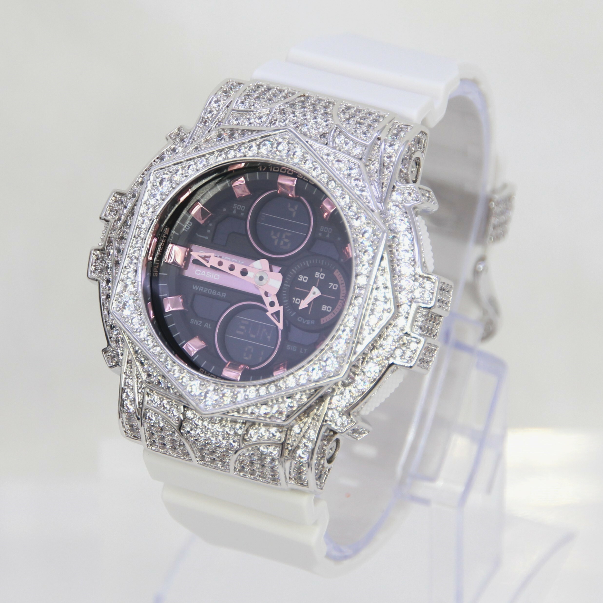 銀色 Mini-G 改裝手錶 GMA-S140M-7A - 玫瑰