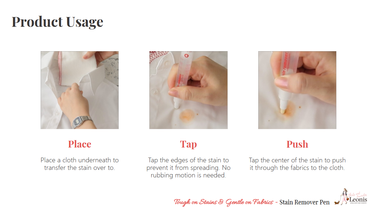 外出時常會沾到的肉醬,咖啡,醬油,咖喱等食物類汙漬都十分有效,越新鮮的汙漬越容易去除